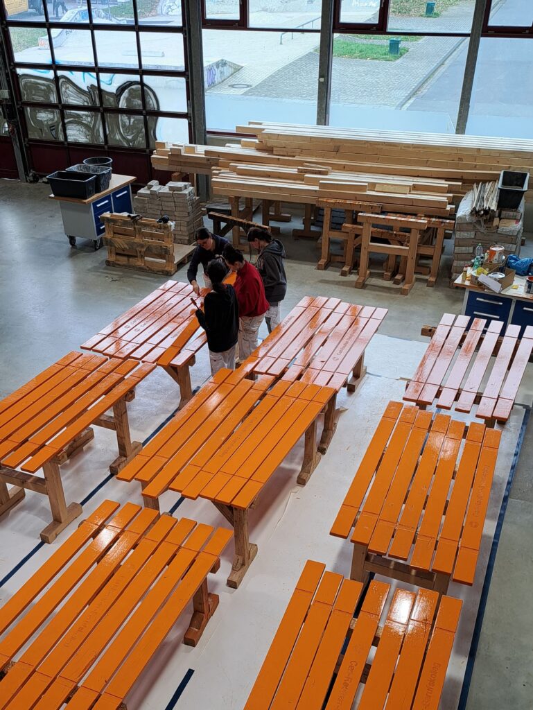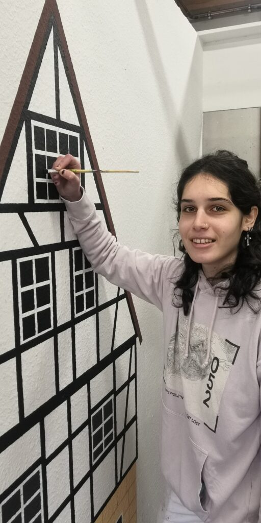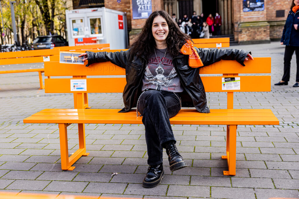 Onenta Santentinai befindet sich aktuell im zweiten Ausbildungsjahr zur Tischlerin und besucht schon seit einigen Jahren unsere Schule. Denn vorher hatte sie bei uns in der Berufsfachschule Farbtechnik und Raumgestaltung die Fachoberschulreife erlangt. Im Praxisunterricht konnten die Schülerinnen und Schüler die schuleigene Werkstatt besuchen. Onenta war somit an der Lackierung von insgesamt 32 Bänken beteiligt. Den ersten Teil der orangefarbigen Bänke hatten wir zum „Orange Day“ am 25 November – zum Internationalen Tag gegen Gewalt an Frauen – für den Rhein-Sieg-Kreis gebaut, die nun in allen Kommunen und Städten an öffentlichen Plätzen stehen. Ein Jahr später half Onenta wieder dabei, orange Bänke für die Stadt Bonn zu bauen und nahm auch an der öffentlichen Vorstellung unseres Projektes teil und hielt eine Rede vor der Oberbürgermeisterin Bonns und vielen geladenen Gästen. Das war für sie nicht einfach, diese Rede zu halten, weil sie erst vor einigen Jahren nach Deutschland gekommen ist. Die Eltern von Onenta stammen ursprünglich aus Albanien. Ihre Familie wanderte erst nach Südeuropa aus, als die Kinder noch klein waren. Onenta wuchs mit ihrem älteren Bruder in Griechenland auf, wo sie in der Ferienzeit hinfährt, um Freunde und Bekannte zu treffen. Allerdings ist der Großteil der Verwandtschaft nach wie vor in Albanien, wo sie also auch ab und zu hinfährt.