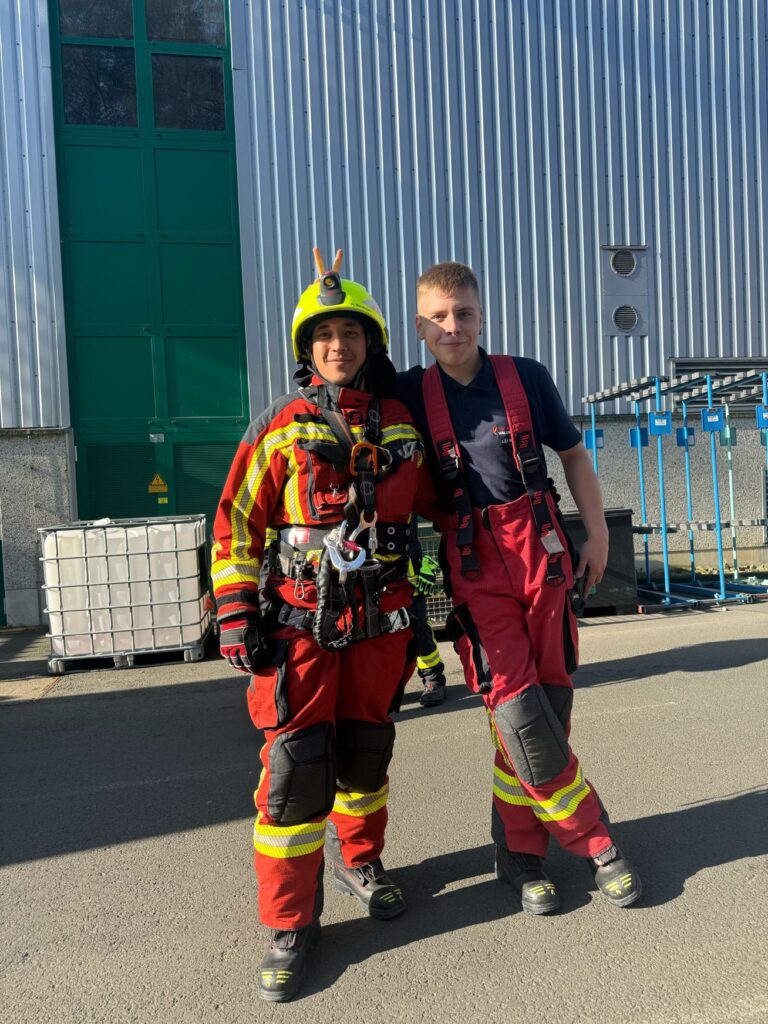 Vieles lief aber auch sehr gut, viele Menschen haben ihm und seiner Familie geholfen, auch Lehrkräfte unserer Schule. Besonders gut gefällt ihm, dass er seit eineinhalb Jahren bei der Freiwilligen Feuerwehr in Waldbröl aktiv ist.  „Ich war immer schon fasziniert von der Feuerwehr. Als ich dort anfing, war auch ein anderes syrisches Mädchen, die mir schrieb und mir Mut machte, mal vorbeizukommen. Anfangs waren alle skeptisch, warum ich dort sein will. Sie waren unsicher, ob ich es ernst meinte, da ich schlecht Deutsch sprach.“ Aber es gelangt Alireza alle zu überzeugen, weil er ihnen zeigte, dass er unbedingt dabei sein will. „Heute fahre ich immer gerne hin, mache meine Modulausbildung und danach habe ich alle Grundkenntnisse eines Feuerwehrmanns erlernt. Danach darf ich bei Einsätzen mehr mitmachen und aktiver helfen.“ Alireza ist dankbar, ist gerne dabei und er sagt: „Außerdem möchte ich auch etwas Gutes für das Land tun, was nun meine Heimat geworden ist.“ Seine Freunde kommen aus Deutschland, Russland, Afghanistan, Iran, Polen. Er sagt: „Viele Kulturen sind eine große Bereicherung, ich lerne viel durch die Gespräche und das Zusammensein.“ Wir freuen uns, dass er hier bei uns am Berufskolleg gute Perspektiven für die Zukunft erhalten hat und wir ihn ein Stückchen begleiten konnten.