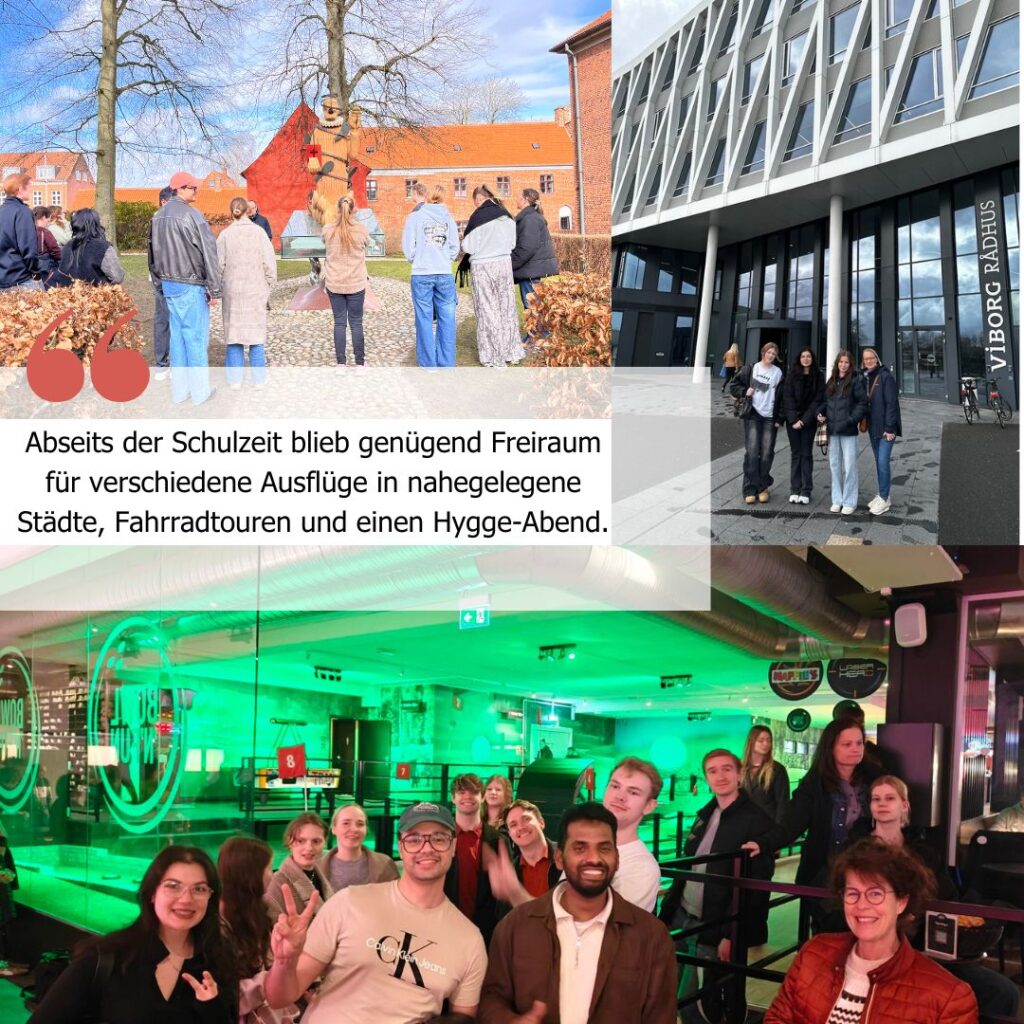 Abseits der Schulzeit blieb genügend Freiraum für verschiedene Ausflüge in nahegelegene Städte, Fahrradtouren und einen Hygge-Abend mit Pizza und Bowling, sodass alle mit tollen Erinnerungen an die dänische Gastfreundschaft und neu geknüpften Freundschaften nach 14 Tagen wieder in Richtung Hennef zurückkehrten. Alle Schülerinnen sind sich einig, dass es eine tolle, erfahrungsreiche Zeit war und freuen sich auf den Besuch der dänischen Gruppe im Spätsommer.