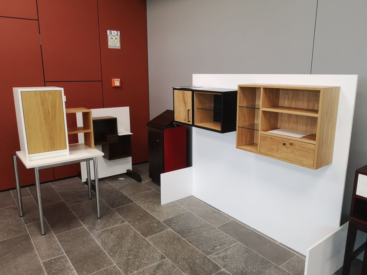 Zwei Wochen lang lief die Ausstellung der fertigen Kleinmöbel in der Aula des CRBK und fand viel Resonanz seitens der Mitschüler*innen und Kolleg*innen; es kam sogar zu Kaufangeboten – ein sicheres Zeichen dafür, dass man sich mit der Ausbildung zur Tischler*in auf einem guten Weg in Richtung Zukunft befindet.