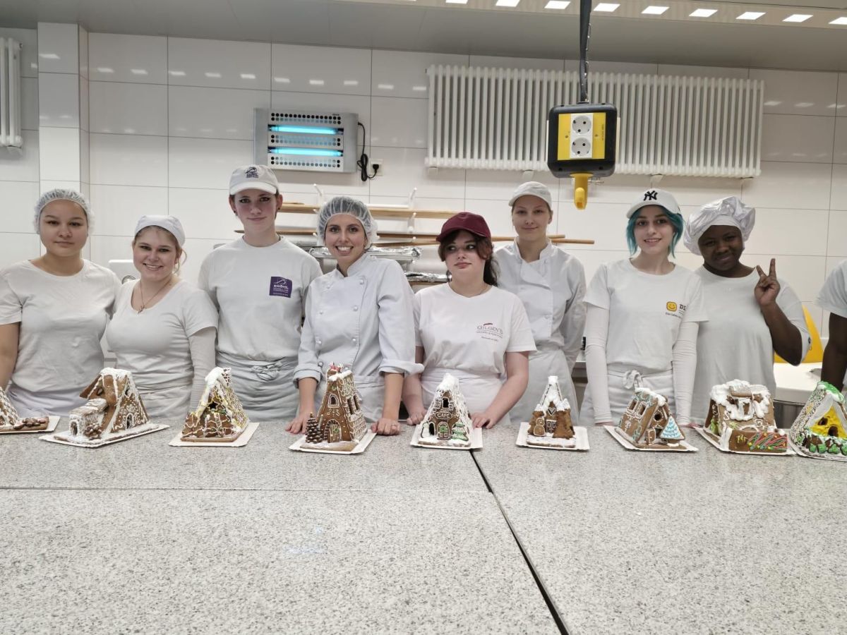 Vom Kreieren der Vorlagen über das Ausschneiden der Printenplatten bis hin zum Zusammensetzen und Ausgarnieren der Hexenhäuser waren die KonditorInnen des 1. Lehrjahres voller Kreativität und Begeisterung dabei.