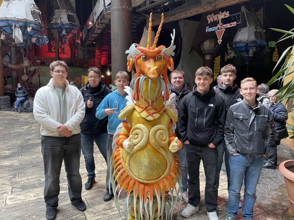 Die Klassen IH24A und BH24A machten am Freitag vor den Herbstferien einen aufregenden Klassenausflug ins Phantasialand in Brühl. Schon beim Ankommen war klar: Das Wetter spielte mit und die Schlangen vor den Fahrgeschäften waren erfreulich kurz. Mutige wagten sich zum ersten Mal auf eine Achterbahn und wurden mit einem ordentlichen Adrenalinkick belohnt – sogar die Lehrer ließen sich den Nervenkitzel nicht entgehen. Weitere Highlights waren die Wildwasserbahn, auf der niemand trocken blieb, die Flucht aus dem verrückten Hotel und lustige Fotos mit den Maskottchen.