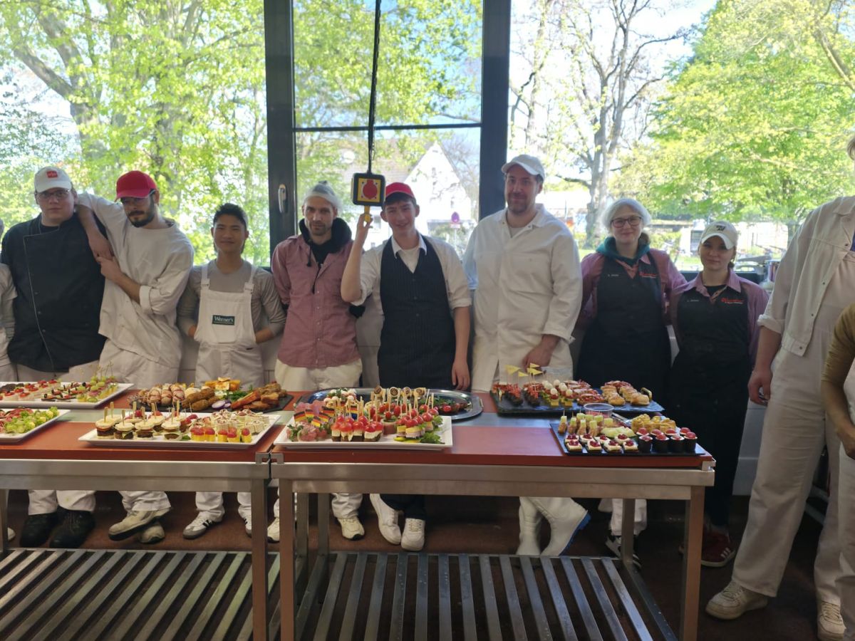 Die Fleischer und Fleischereifachverkäufer des 2. Lehrjahres haben am Mittwoch im fachpraktischen Unterricht Grillplatten und Fingerfoodplatten für den Kundenverkauf hergestellt.