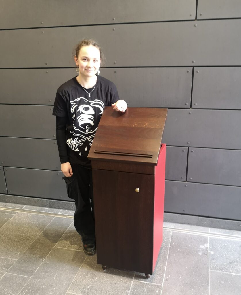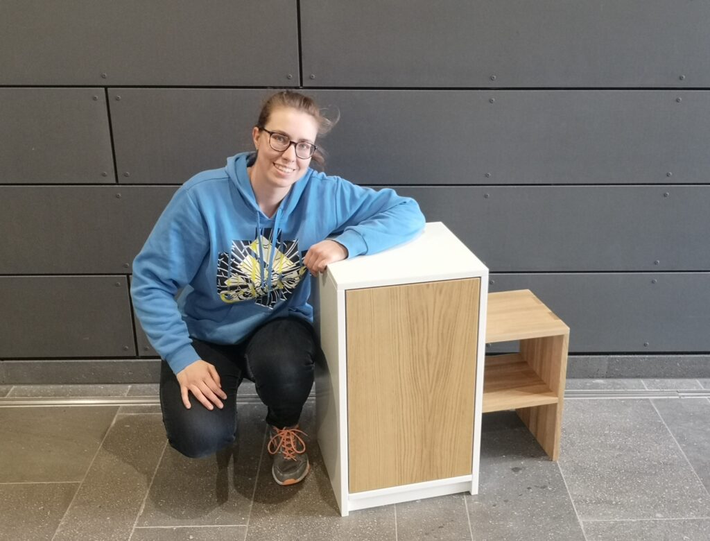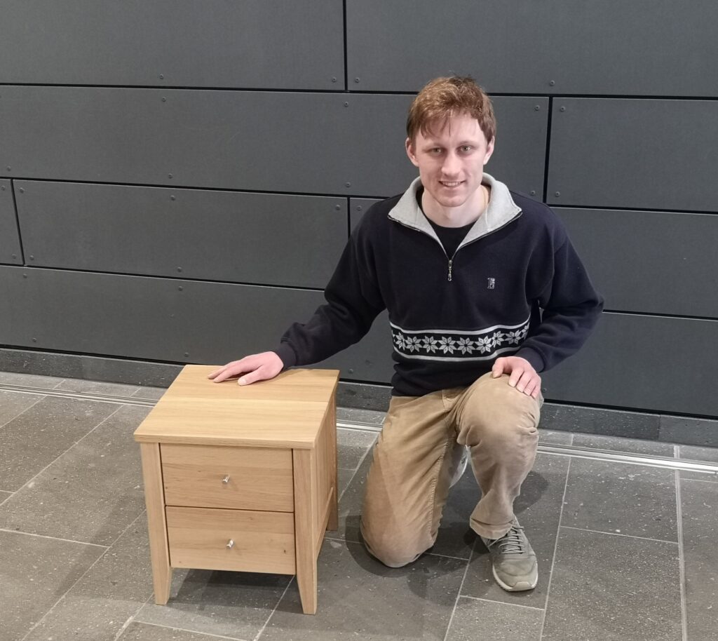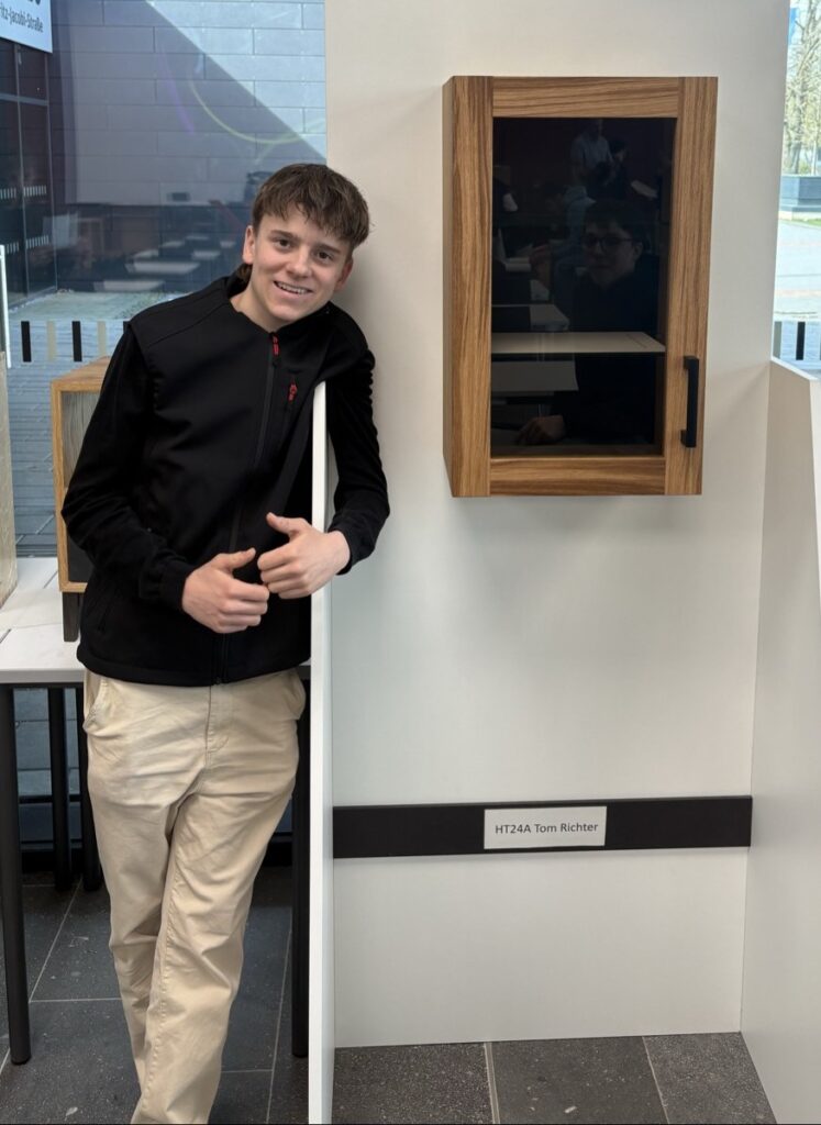 Zwei Wochen lang lief die Ausstellung der fertigen Kleinmöbel in der Aula des CRBK und fand viel Resonanz seitens der Mitschüler*innen und Kolleg*innen; es kam sogar zu Kaufangeboten – ein sicheres Zeichen dafür, dass man sich mit der Ausbildung zur Tischler*in auf einem guten Weg in Richtung Zukunft befindet.