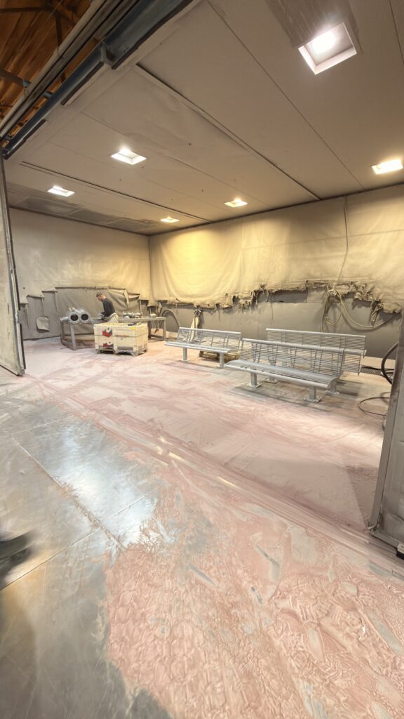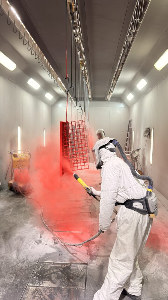 Der Montag stand ganz im Zeichen der industriellen Praxis. Nach dem Frühstück besuchte die Gruppe die Firma ZINQ, einen Spezialisten im Bereich Korrosionsschutz. Nach einer Unternehmensvorstellung und einer Sicherheitseinweisung erhielten die Teilnehmenden Einblicke in die Produktionsabläufe. Ein besonderes Highlight war die Begleitung von Dreharbeiten mit der Influencerin „monoista“, die im Vorfeld Möbelstücke für das „Haus der Geschichte“ entworfen hatte. Die Gruppe konnte den Prozess der Pulverbeschichtung dieser Werkstücke – von der Grundierung bis zum finalen Farbauftrag – aus nächster Nähe verfolgen. Darüber hinaus bot sich die Möglichkeit, weitere Arbeitsschritte wie das Sandstrahlen zu beobachten, während die beschichteten Teile im Ofen aushärteten.