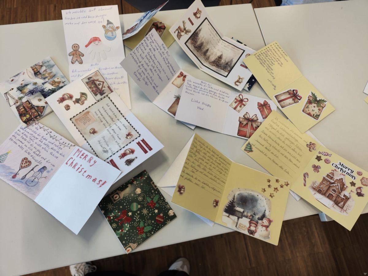 🎄 Unsere Schülerinnen und Schüler der internationalen Förderklassen haben liebevolle Grußkarten mit Weihnachts- und Neujahrswünschen für die Seniorinnen und Senioren im Altenzentrum Helenenstift verfasst und gebastelt. Ziel war es, den Menschen im Altenzentrum zu den Feiertagen eine kleine Freude zu bereiten und ein Zeichen der Verbundenheit zu senden.